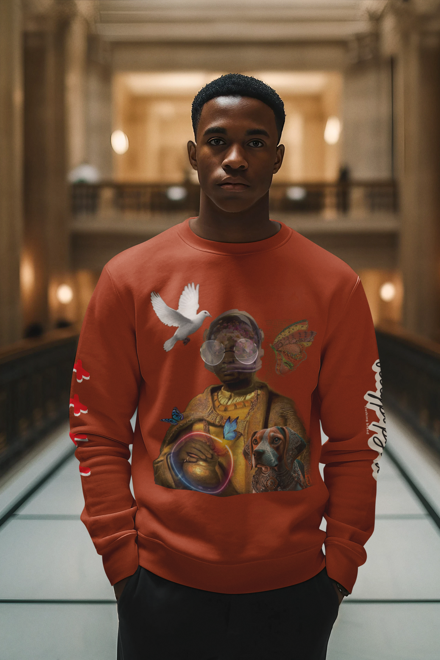 Art Designed Tribal Heavy Crewneck Sweatshirt (Red)